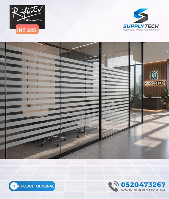 Le film adhésif INT 245 se distingue par son motif à bandes dépolies de 45 mm, idéal pour personnaliser et structurer visuellement vos fenêtres, cloisons ou meubles en verre. Il préserve l’intimité tout en laissant passer la lumière, créant une atmosphère douce, lumineuse et contemporaine.