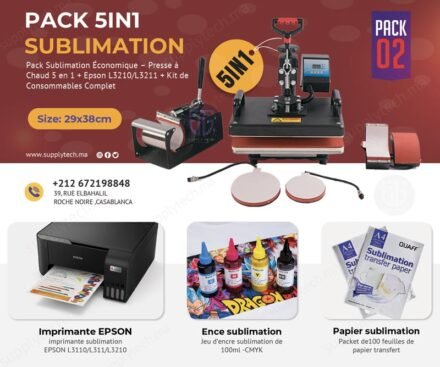 Pack de Sublimation N°2– Presse à Chaud 5 en 1 standard (29×38 cm) + Epson L3211