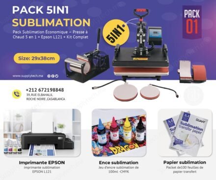Pack de Sublimation N°1– Presse à Chaud 5 en 1 standard (29×38 cm) + Epson L121