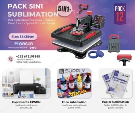 Pack de Sublimation N°12– Presse à Chaud 5 en 1 FreeSub (40×40 cm) + Epson L121
