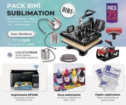 Pack de Sublimation N°23– Presse à Chaud 8 en 1 FreeSub (29×38 cm) + Epson L3250