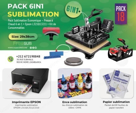 Pack de Sublimation N°18– Presse à Chaud 6 en 1 FreeSub (29×38 cm) + Epson L3211
