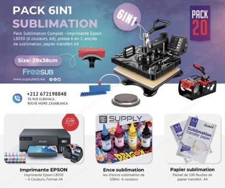Pack de Sublimation N°20– Presse à Chaud 6 en 1 FreeSub (29×38 cm) + Epson L8050 A4