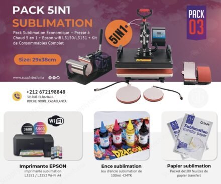 Pack de Sublimation N°5– Presse à Chaud 5 en 1 standard (29×38 cm) + Epson L8050 A4