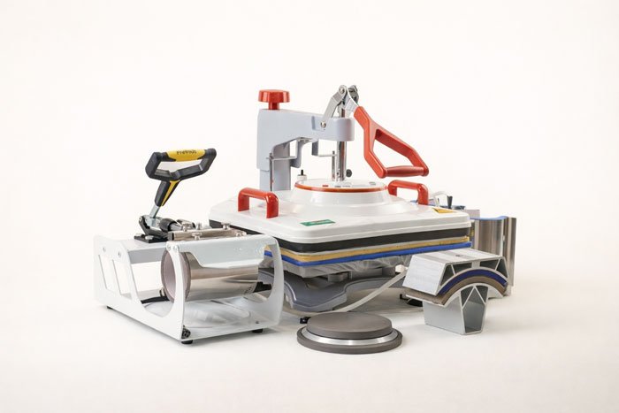 Découvrez notre presse à chaud multifonction 8 en 1 de la marque FRESUN, un dernier modèle conçu pour les professionnels de la personnalisation textile et des objets publicitaires.