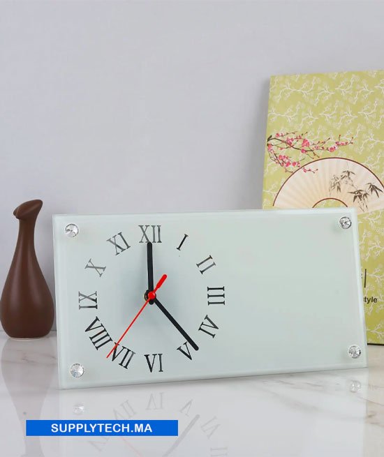 Cette horloge rectangulaire en verre, de dimensions 16×30 cm, est un support élégant et moderne pour la personnalisation par sublimation. Conçue avec une surface lisse et brillante, elle offre un large espace pour sublimer vos photos, illustrations, ou logos, tout en restant fonctionnelle et décorative.