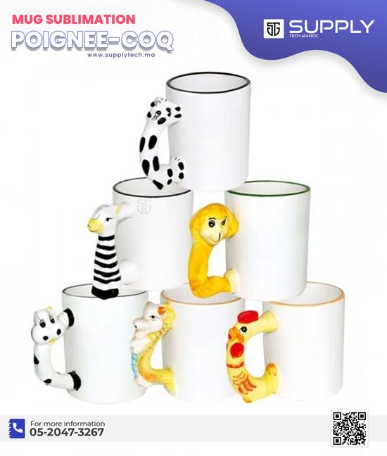 Voici les détails techniques pour sublimer notre mugs enfants avec poignée en forme d'animal,