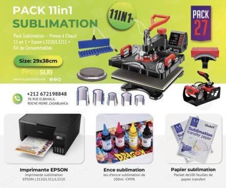 Pack de Sublimation N°13– Presse à Chaud 5 en 1 FreeSub (40×40 cm) + Epson L3211 Le prix initial était : د.م. 6.000,00.Le prix actuel est : د.م. 5.200,00.