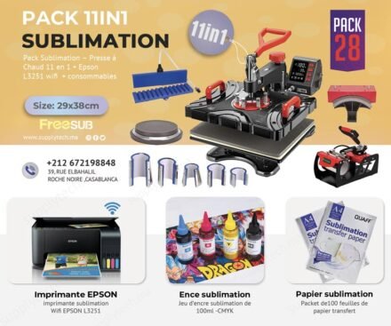 Jeu d’encres de sublimation – 6 couleurs : Noir, Cyan, Magenta, Jaune, Rouge, Light Cyan/Magenta (selon modèle)
