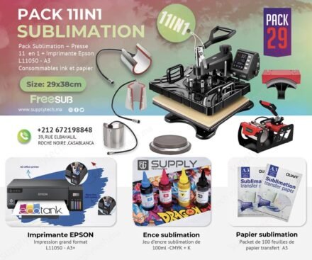 Encre de sublimation 100 ml + papier transfert et scotch thermique de 30m Idéal pour la sublimation. Compatible avec toutes les imprimantes Epson EcoTank.
