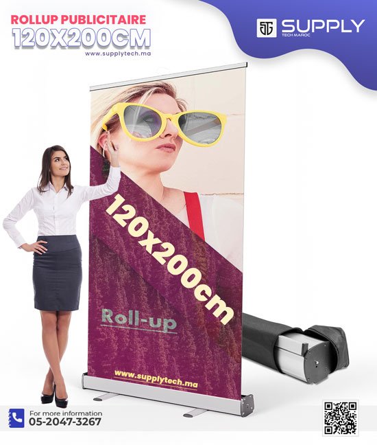 Le Roll-up 120 × 200 cm Supplytech est un support publicitaire grand format conçu pour vos salons, événements et vitrines.
