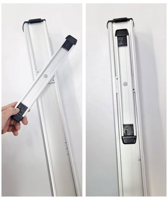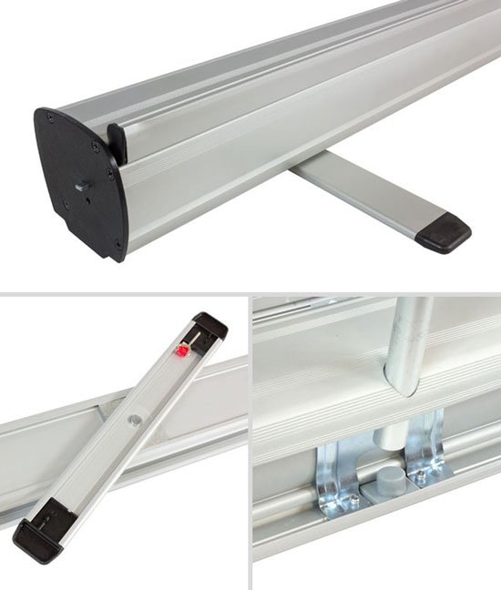 Idéale pour les salons, foires, expositions et présentations d’entreprise, elle permet de mettre en avant vos visuels avec un rendu hautement professionnel. Sa structure en aluminium anodisé renforcé et ses deux tiges verticales garantissent une excellente stabilité, même sur de grandes surfaces d’affichage.