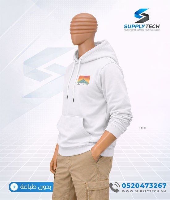 Soyez le premier à laisser votre avis sur “Sweat à capuche blanc unisexe avec Poche Kangourou – polycoton”