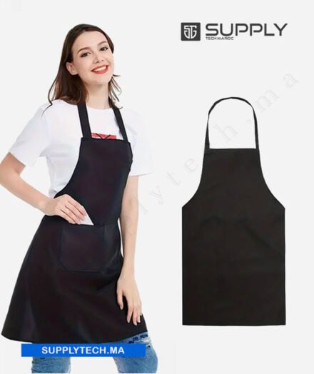 Le prix initial était : د.م. 60,00.د.م. 40,00Le prix actuel est : د.م. 40,00.Tablier de Cuisine noir long unisexe Professionnel en Polyester avec Poches